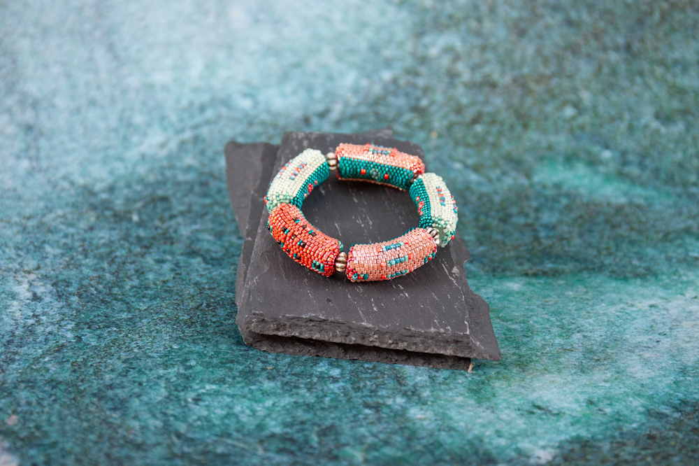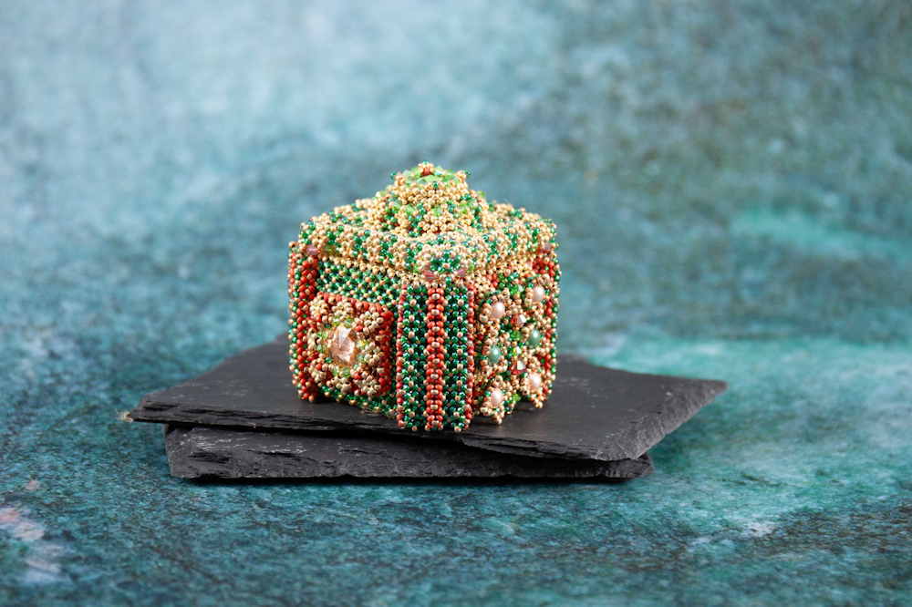 Ich liebe das meditative Aneinanderreihen und Vernähen mit verschiedenen Stitches und Methoden um Farben und Formen zu kombinieren. Der Glanz, die Struktur und die vielen unterschiedlichen Glasperlenformen sind dabei sehr inspirierend.